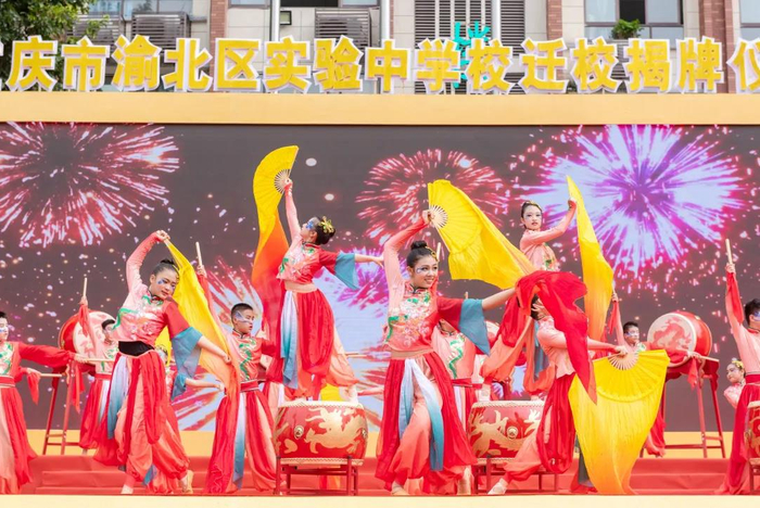迁校揭牌仪式后,渝北区实验中学开启了盛大的文艺演出,本次演出以“魅力实中”“祝福实中”“扬帆实中”三个篇章展开。
