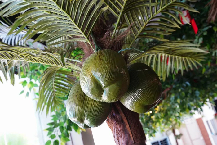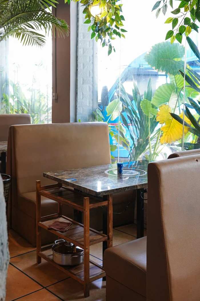 胡桃木色的装饰,古色古香!店里大大的仿真椰子树,带你一秒穿越到海南!体验感拉满!