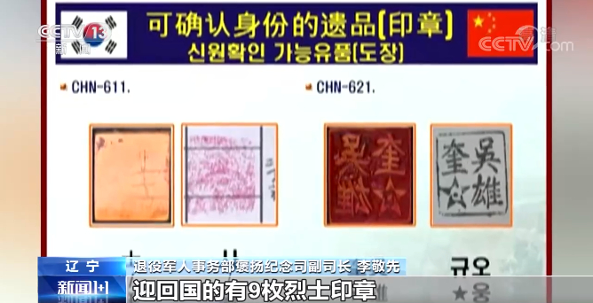 退役军人事务部褒扬纪念司副司长 李敬先:去年随第七批在韩志愿军烈士迎回国的有9枚烈士印章,我们第一时间采集了所有迎回烈士遗骸的DNA信息,并结合战史资料和印章等遗物寻找烈士线索,锁定了300余名有可能的志愿军烈士家属进行采样比对。