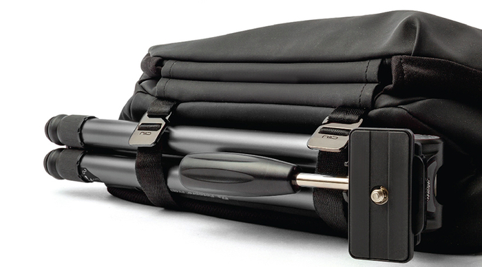 底部还有两条支撑带,可以放置三脚架、或单车锁,方便极了。