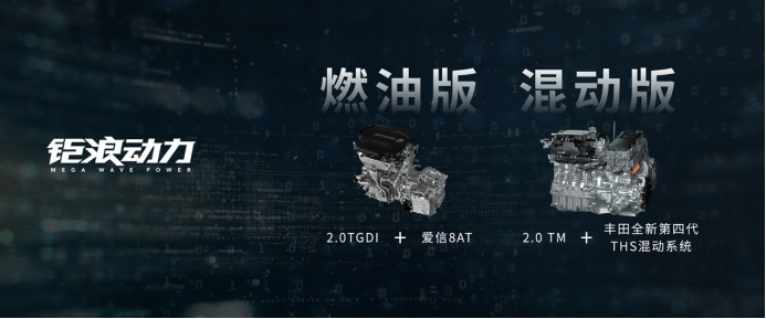 全新第二代GS8基于钜浪动力平台打造,新车提供两种高端动力组合,燃油版车型搭载了钜浪动力2.0T GDI发动机+爱信最新一代8AT动力总成,最大功率185kW,最大扭矩从390N·m提升至400N·m;混动版车型是首款搭载丰田全新第四代THS混动系统的中国品牌车型。广汽技术与丰田混动合作的这套动力系统,0-100km/h加速时间仅为6.9s, NEDC工况油耗5.3L/100km,综合工况节油率达到30%。