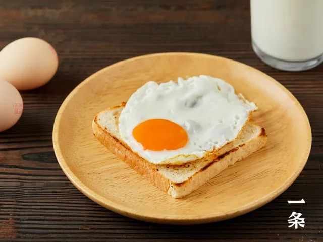你看,一颗溏心煎蛋+一片烤吐司的组合,再搭配一杯牛奶,正好就是一份简单又有营养的早餐哦!
