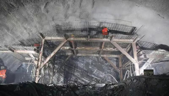 据了解,尖山隧道由中国铁路兰州局兰州工程建设指挥部建设管理,中铁十四局集团承担施工,全长6002米,最大埋深519米。尖山隧道穿越地层岩性复杂,倾斜及垂直节理发育,地处高地应力、软岩变形等不良地质,洞身穿越7条断层带,隧道围岩破碎,存在突然性塌方风险,施工难度极大、安全风险极高。