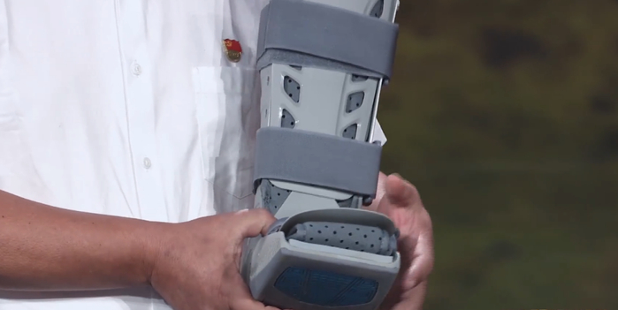 孙丽美穿着这双特殊的保护靴