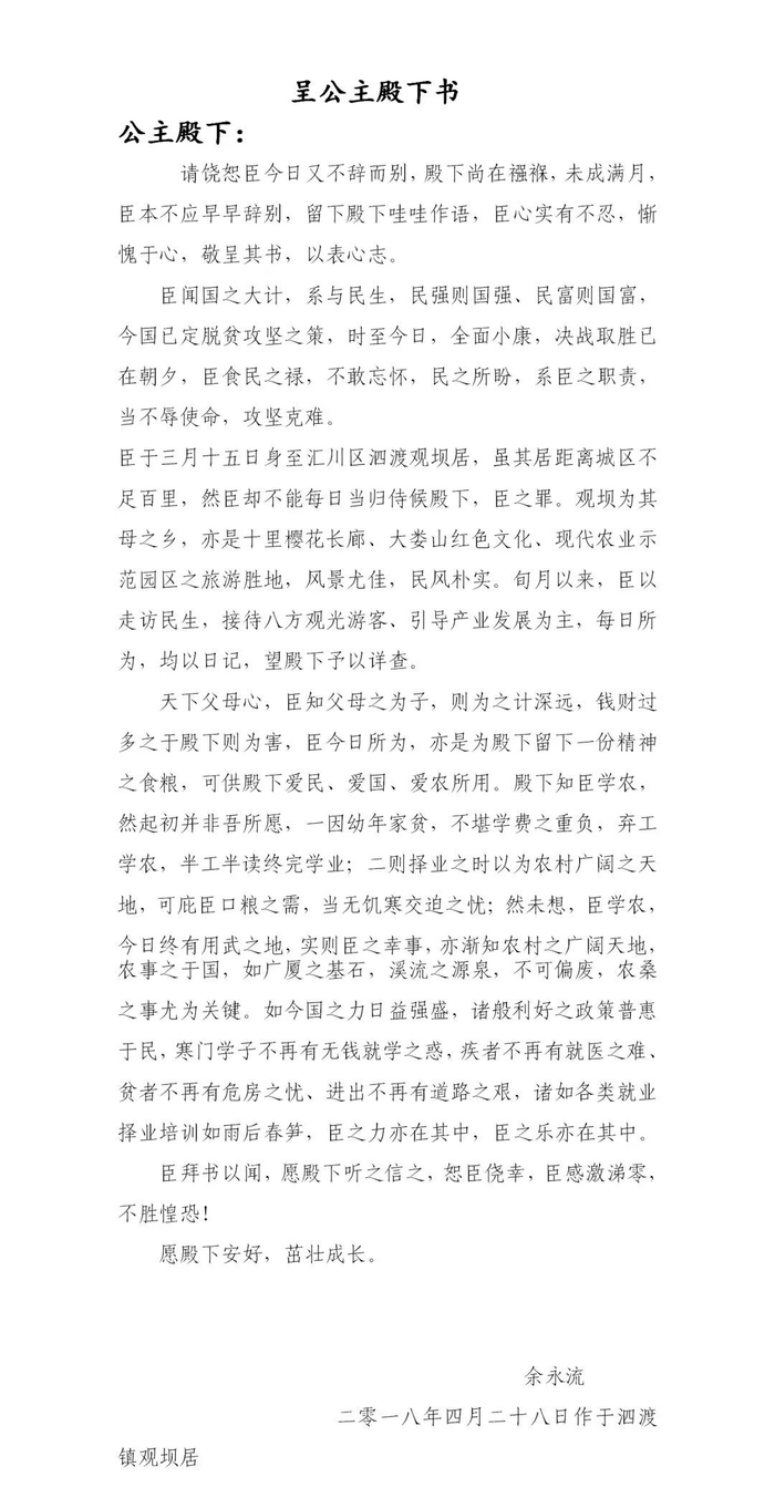 给襁褓中的女儿的家书