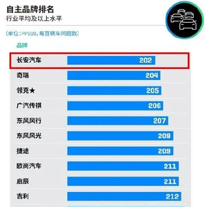 9月2日,全球领先的消费者洞察与市场研究机构J.D. Power(君迪)正式发布了2021中国新车质量研究报告。在中国品牌排名中,长安汽车以202个PP100的优异表现,一举获得中国品牌排名第一,主流车品牌排名第七的成绩。