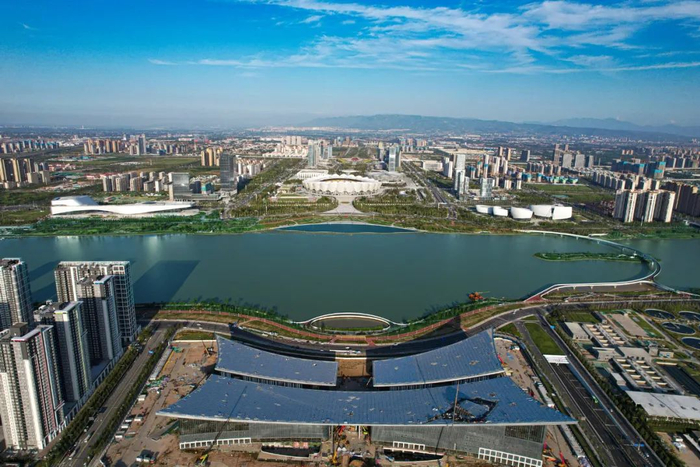 “书页”缓缓展开,西安文化新地标昂然屹立在灞水之滨。