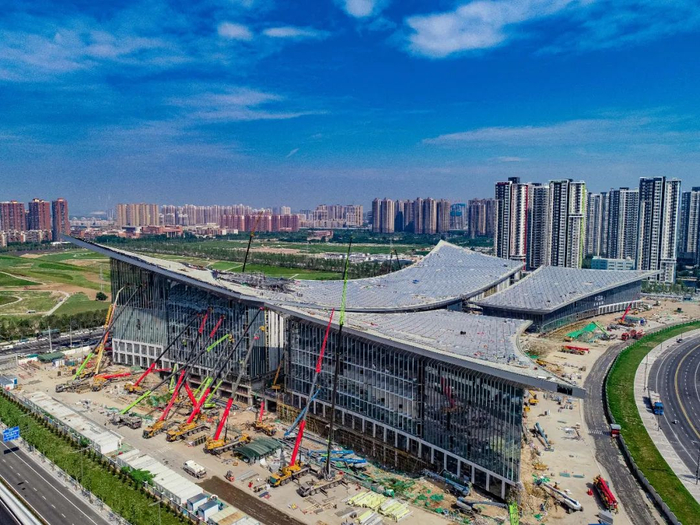 武海靖告诉记者,该项目建设时间紧、任务重,整体施工难度大,主体采用钢结构,施工面积大,交叉作业多,特别是屋顶的悬挑施工,施工难度大,对施工质量管理、安全管理造成较大压力。为此,项目制定了合理的施工进度计划,保证交叉施工的顺利进行,同时做好安全管理工作,包括临边防护、张贴警示牌、动火管理等,保证施工顺利进行。