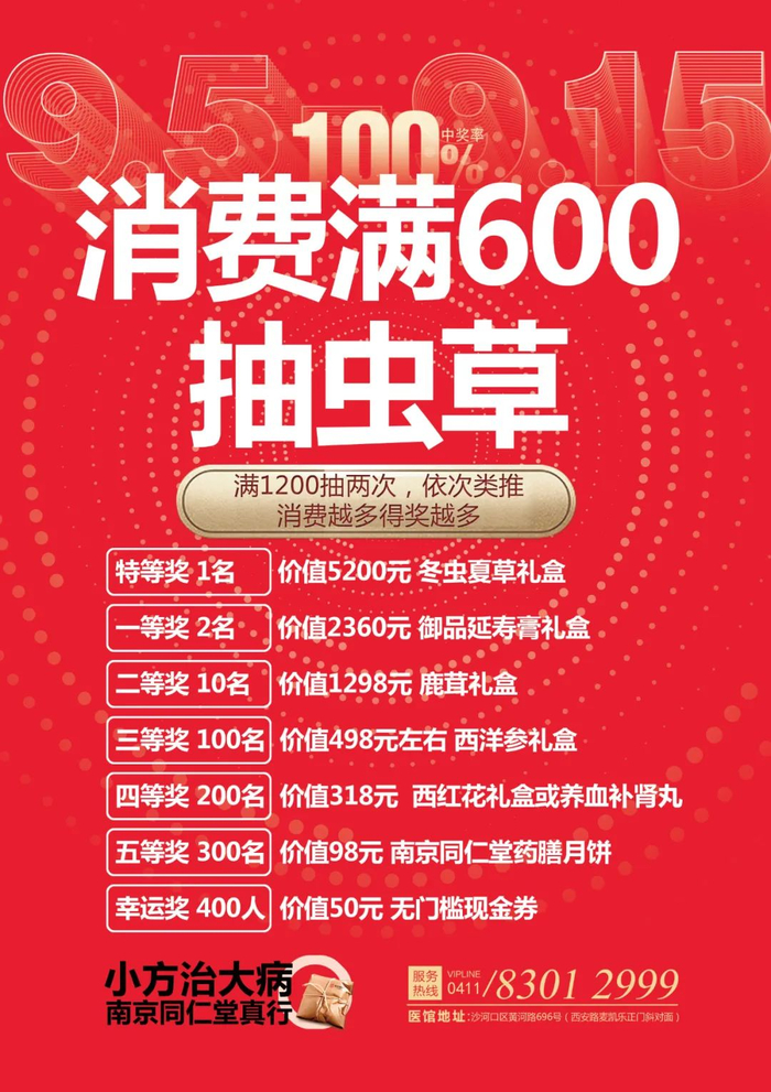 送100元理疗卡或价值98元秋梨膏