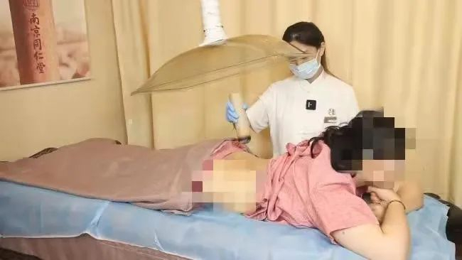 专业中医理疗师为患者做祛湿扶阳手持灸