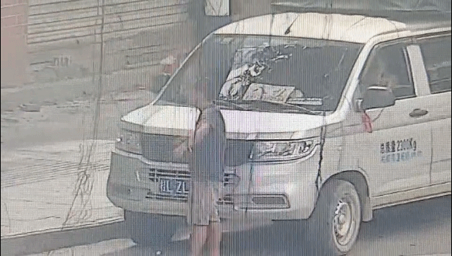 9月3日上午,在百色市田林县城八桂坡路边,一名绿衣男子站在一辆小型货车前,像是在等待什么。