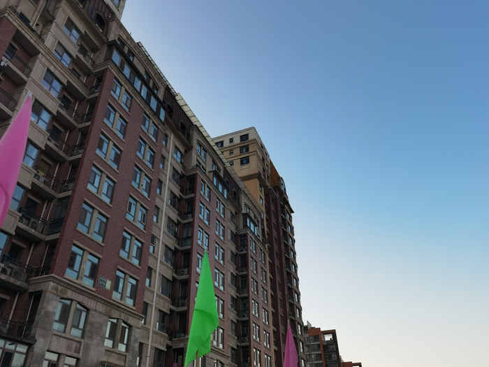 现如今可以看到,小区内的14栋楼的楼顶,几乎每栋楼都有砖混结构的加盖建筑,有的业主甚至加盖两到三层。在原本参差不齐的楼顶结构中,不难辨别出一些外墙色彩较为突兀的违建房屋。尽管不少楼顶违建的窗户大小形状都与楼下近似,但仔细观察,还是能看出与“原版”的不同。小区的1号楼原本为一栋18层的塔楼,但在18层之上,又多出一层外墙体为水泥灰的19层,与楼下的米色外墙形成了鲜明对照。而紧邻1号楼的6号楼、7号楼为板楼结构,原本11层的建筑顶部,被加盖起一排房屋,其窗户造型、墙体粉刷则并不相同,显得有些“随心所欲”。夜晚降临,屋顶加盖的违建房屋内不少都亮着灯,灯火通明,入住率不低。