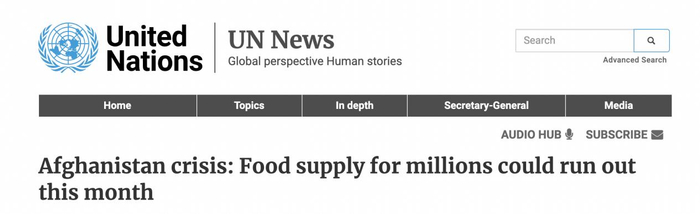 就在一些美国舆论突然“关心”起阿富汗“人权状况”时,8月31日,联合国秘书长古特雷斯表示,目前,阿富汗近1800万人需要人道主义援助才能生存,这几乎占据阿富汗人口总数的一半。