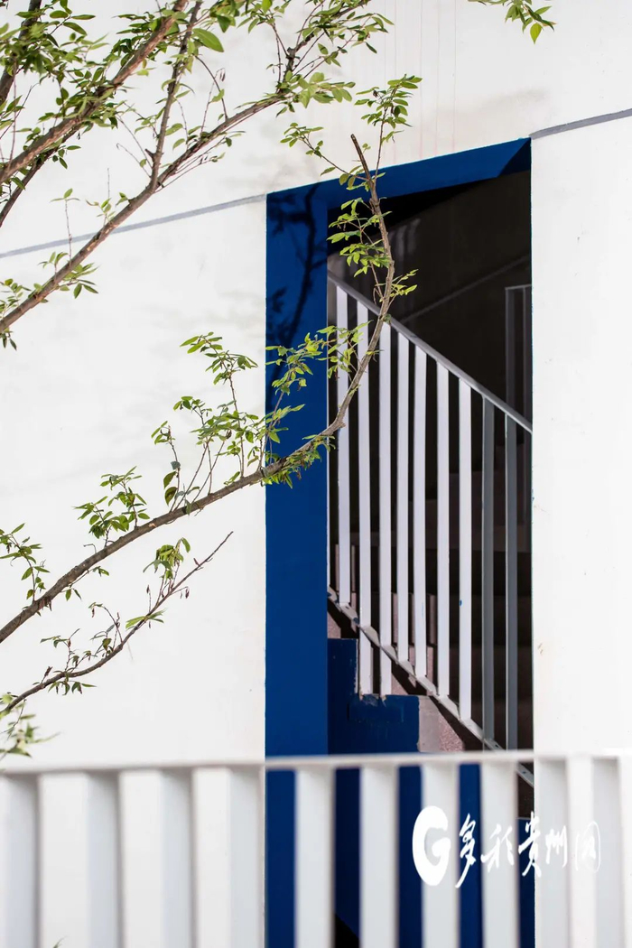 学校建筑结合山墙的阳台和疏散梯打造了富于变化的趣味空间