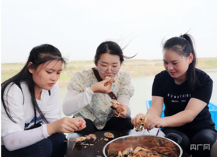 祁家湖的螃蟹在周边市场的认可度较高,市场供不应求。每天慕名而来的顾客络绎不绝。王俊伟摄 央广网发