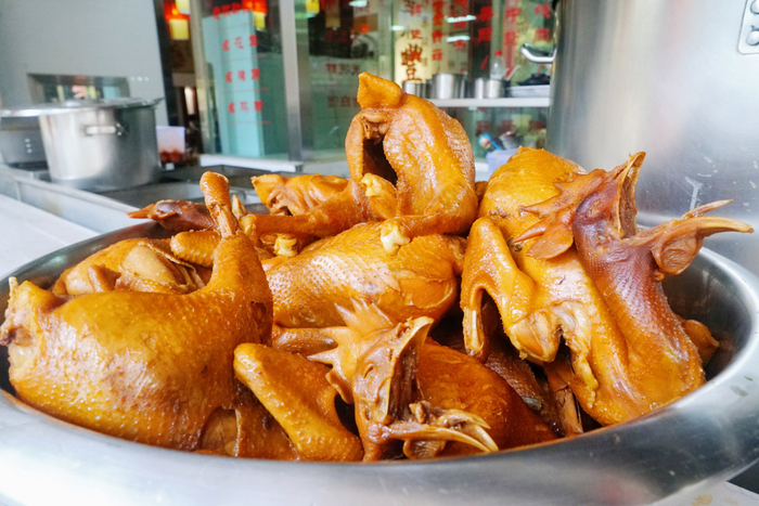 卤鸡和凉米线作为一道头牌美食,深受当地人喜爱,是到店必点菜品之一。色泽金黄、肉质鲜嫩的卤鸡,吃一口下去,满口油汁充满唇齿之间,再佐以秘制蘸料,幸福感瞬间提到了一个高点。