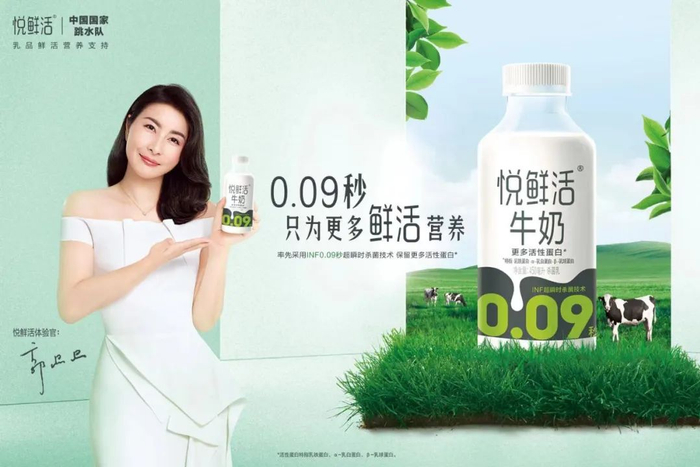 2019年,悦鲜活斩获2019世界乳品创新奖“最佳工艺创新奖”;《悦鲜活乳制品开发》项目通过中国食品科学技术学会专家委员会鉴评,被评为“新一代鲜牛奶”。同年,“新一代鲜牛奶”悦鲜活成为中国国家跳水队"乳品鲜活营养支持",并邀请郭晶晶成为悦鲜活代言人。