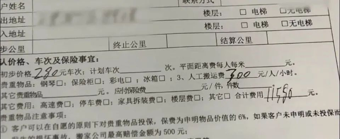 搬家结算时费用比最初报价高10多倍