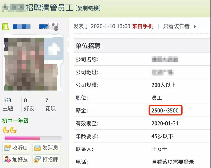 招的也是上了一定岁数的阿姨,学历要求不高,薪资水平也一般。