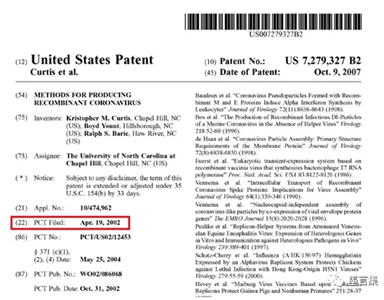 他表示,但是,2002年在中国发生了所谓的爆发,导致到2003年,美国疾病控制与预防中心(CDC)在当年4月提交了一份非常有问题的文件。精确搞清其中的细微差别至关重要,因为文件提交了SARS冠状病毒的整个基因序列。这实际上违反了美国法典35节第101条:你不能为天然存在的物质申请专利。违反美国法典第35节第101条的专利的专利号为7220852。