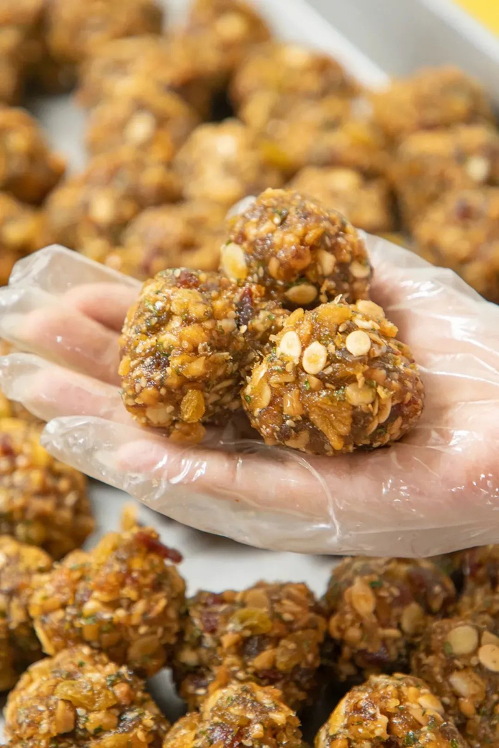 瓜子仁、核桃仁、芝麻仁、杏仁、花生仁粒粒增香看得见,还另外添加了一点葡萄干作为口感辅助,真正的口口生香。