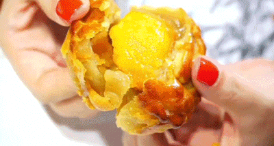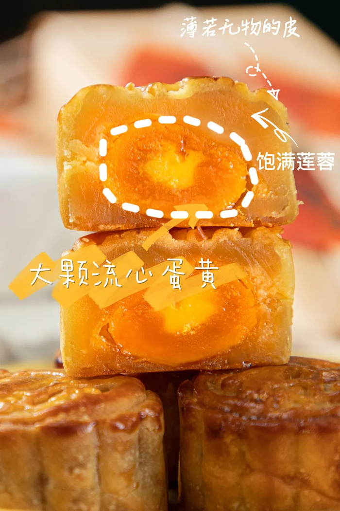 油润润的薄皮包裹着满满莲蓉和巨大的一颗的蛋黄,一口下去润、沙、甜碰撞在一起,满口的幸福,妙不可言。