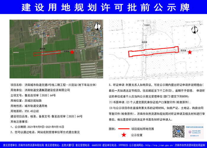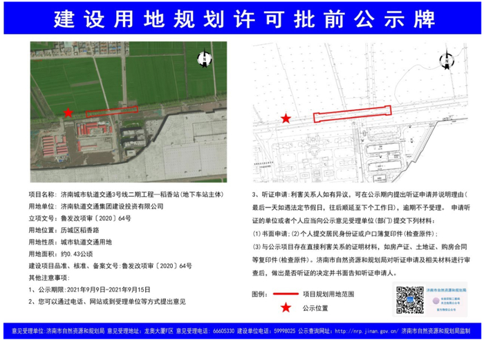 9月9日,济南市自然资源和规划局发布一批地铁站建设用地规划许可批前公示,涉及轨道交通3号线二期稻香站、川流站,4号线一期起点站、终点站以及沿线多个车站,共7个站点。看看有你家附近的吗?