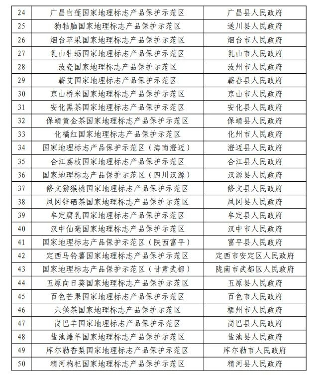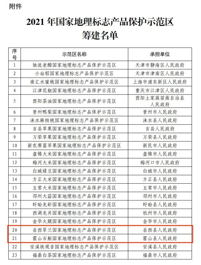 2021年国家地理标志产品保护示范区
