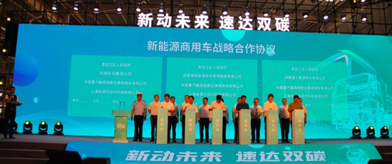 据悉,本次推介活动不仅是重汽成商新能源重卡的首次亮相,也是青白江区新能源商用车产业发展的新起点。活动上,青白江区政府、重汽成商与成都交通投资集团、成都城投能源投资管理集团、成都建工集团物流有限公司、上海启源芯动力科技有限公司分别签署了新能源商用车战略合作协议。未来,青白江区将全力支持重汽成商新能源汽车产业发展和相关能源基础配套设施建设。