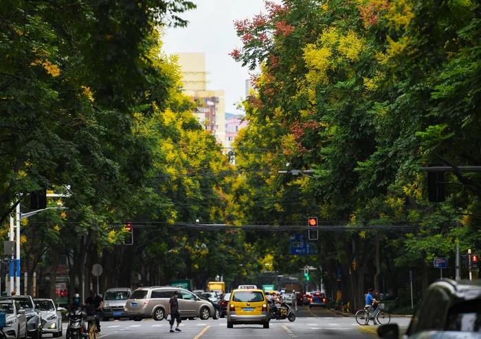 海棠记错时间?栾树下“黄金雨”,魔都秋天惊喜满满→