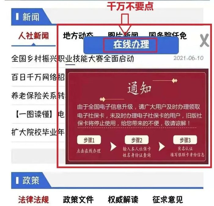 其次,即便有关于办理社保卡等相关操作,社保部门也不会通过短信链接这一方式开展。
