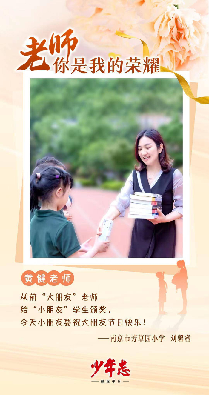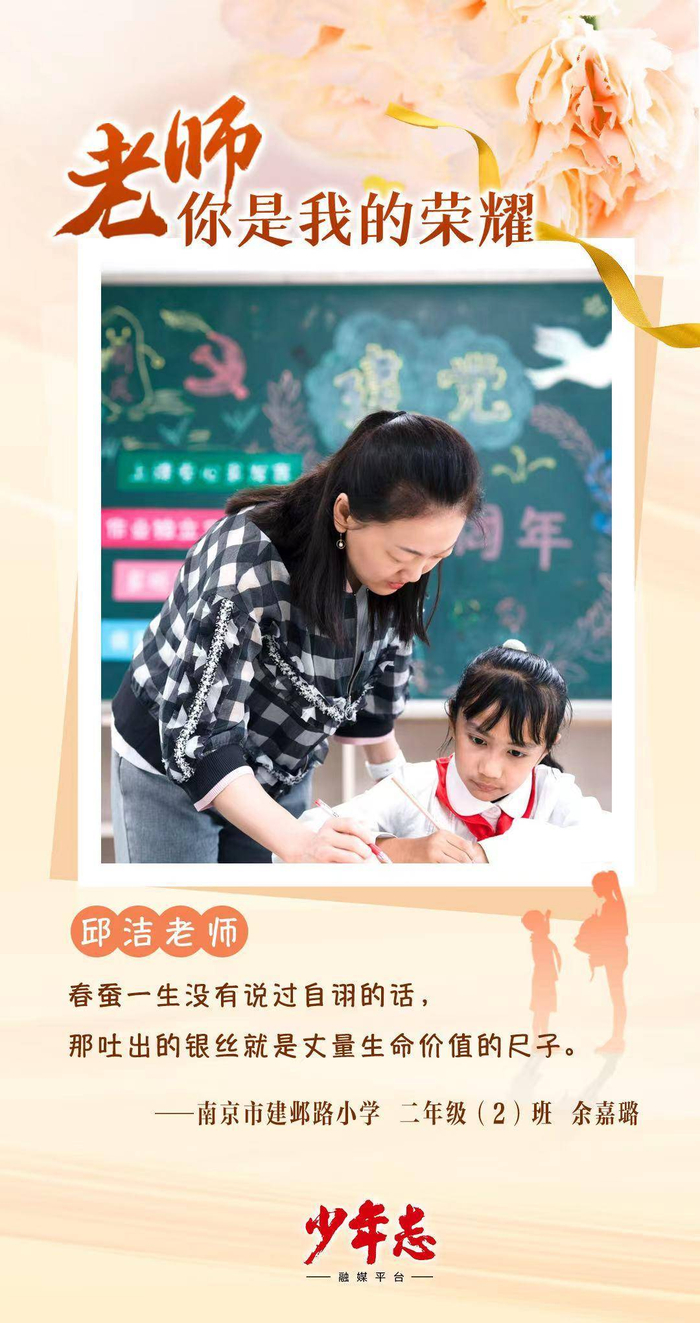 今天是教师节,本次活动投稿平台——少年志融媒平台特别推出“你是我的荣耀”教师节告白系列海报,一起感受绵绵的师生情谊,共同为老师送上节日的问候。