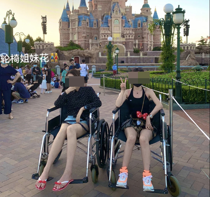 记者看到,有位女网友拍了自己坐在轮椅上的照片发到网上,称“单纯就是觉得走路累,让男朋友用轮椅推着自己,这样比较轻松……”很多网友说她“手脚正常的人非要坐轮椅,这是在秀下限吧”。女生很委屈,回应说,“我不知道错在哪里,我们花自己的钱,自己推轮椅,玩游戏乖乖下来排队,把轮椅放在一边。我走不动花钱消费,迪士尼不允许我消费吗?”