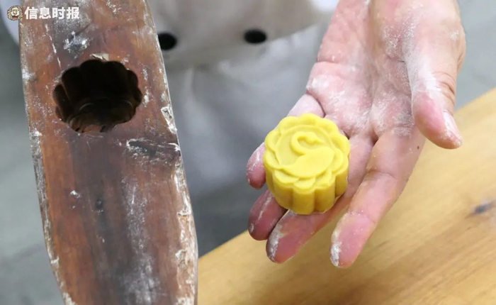 “月饼要上色,还得刷够3层蛋液,但不能太快,要待每一层蛋液都稍微风干后再刷第二层。”边介绍迷你月饼的制法,谭师傅边摩挲着那只木质模具说:“这个模具我们已经用了30年了,可以说它见证着白天鹅月饼的蜕变。”