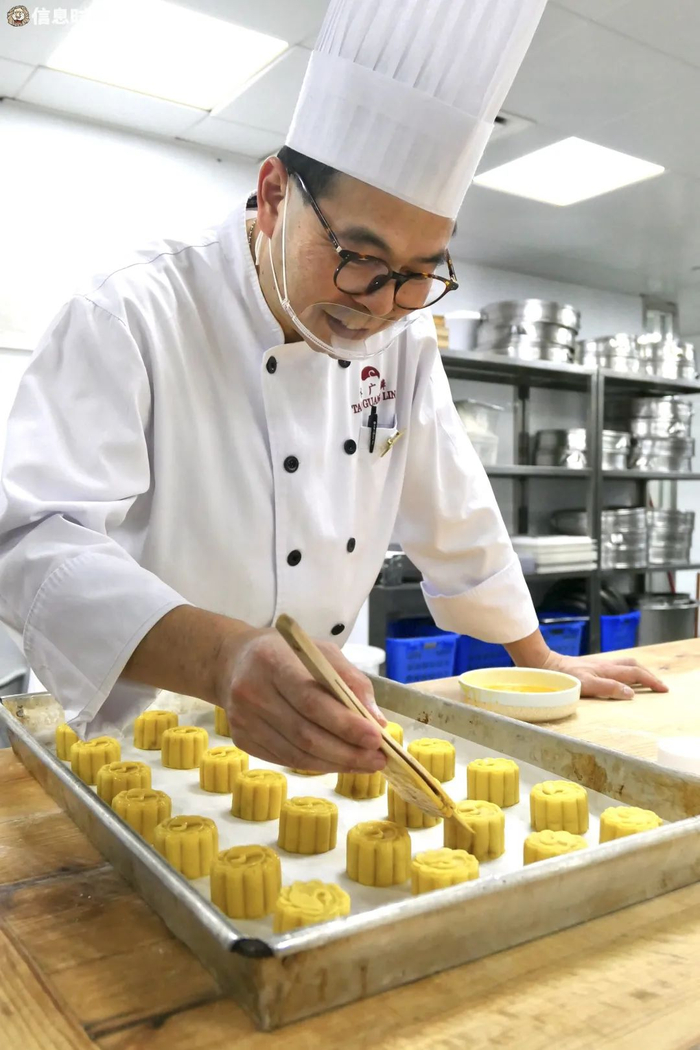 随着流水化生产线逐渐代替手工出品,手作月饼如今在市面上已经买少见少。说起当年每逢中秋节前,酒店后厨所有员工都忙着在后厨做月饼的场景,在白天鹅宾馆任职30年的谭广燐师傅对当时的场景仍历历在目。“当时酒店所有实习生,无论是哪个部门的,都会被抓进后厨帮忙。大家24小时不间断轮班做饼,那段时间,酒店里总会弥漫着一股烤月饼的香味,回到家衣服上也带着牛油香味。”