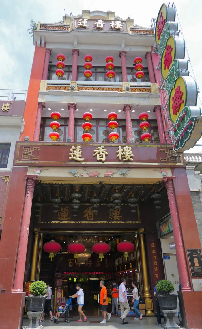 说起莲蓉月饼的大哥大,不得不提有着“莲蓉第一家”名号的莲香楼。始创于1889年的莲香楼,原名本为“连香楼”,早在清朝光绪年间便以专做糕点起家。制饼的老师傅陈维清从莲子糖水中偶得灵感,想到将莲子做成莲蓉馅料制成糕点,才有了如今广式以莲蓉做的各种点心。
