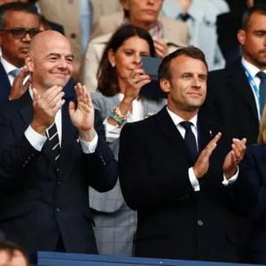 资料图:当地时间6月7日,2019年法国女足世界杯在巴黎开幕。图为法国总统马克龙及夫人布丽吉特与国际足联主席因凡蒂诺出席开幕式,并观看揭幕战比赛。中新社记者 富田 摄