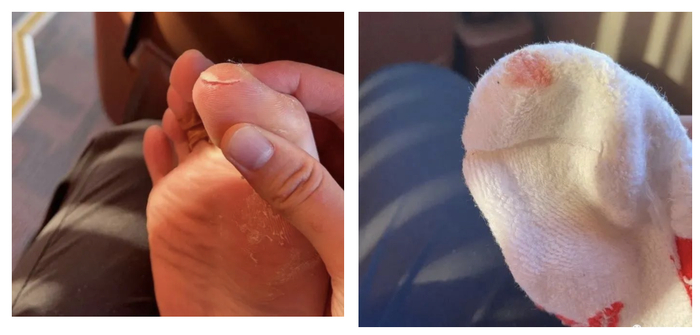 “第一局打的时候鞋前面不知道怎么开了,有个像钢丝还是线一样的东西把我的脚划开了。那个东西一直刮我的大拇指,所以换了一双之前的鞋穿着打,多少比之前的好一点。”