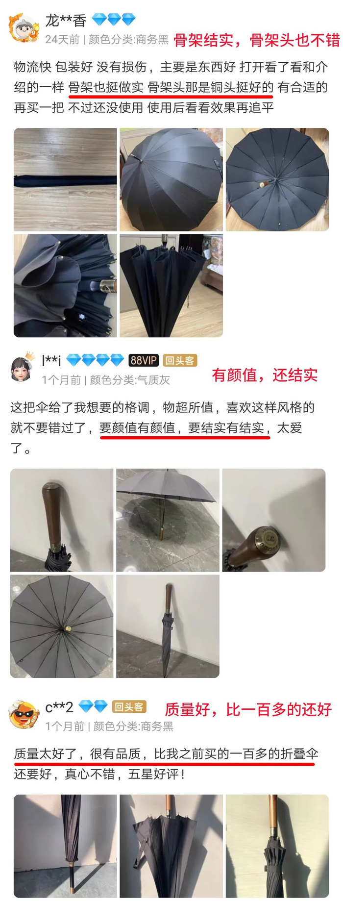伞骨结实度一个对比就能分出高下。