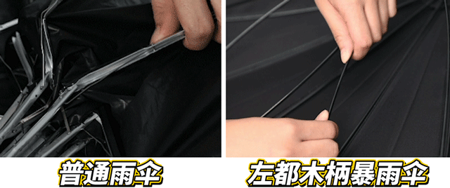 左都木柄暴雨伞,为了避免这种“窘状”,采用了280T高密度碰击布。