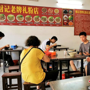在恩平的大街小巷,专营濑粉的小食店随处可见,前去帮衬的街坊和外地食客络绎不绝。“想吃礼粉还是河粉?有莲藕猪骨粉、猪尾龙药材粉、鱼蛋药材粉、酸豆角花生粉、猪脚药材粉、老鸭药材粉、牛腩药材粉、牛肚药材粉。”9月11日,恩城始创于1989年的财记老牌礼粉(环市路店)负责人招呼食客时介绍道,财记家传药材秘制老火靓汤礼粉在当地很受青睐。该店选用的是湿礼粉,平时每天用量约100公斤,遇到节假日用量会明显加大。礼粉需经烫煮、“过冷河”处理,搭配食客下单相对应的食材即可上桌。