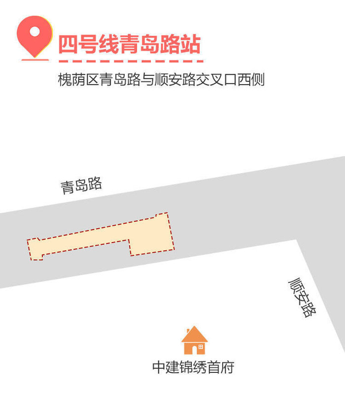 青岛路站位于槐荫区青岛路与顺安路交叉口西侧,用地面积约0.5公顷。
