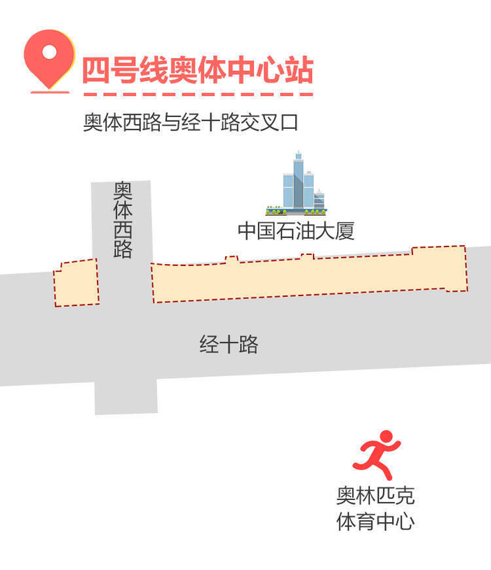 奥体中心站是4号线与3号线一期的换乘站,位于历下区奥体西路和经十路交叉口,用地面积约0.62公顷,北侧为中国石油大厦,南边则是奥林匹克体育中心。