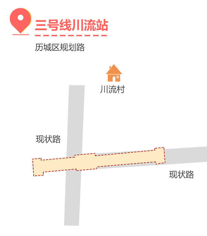 川流站同样为地下站,位于历城区川流村南侧规划路,占地约0.45公顷,紧靠川流村。