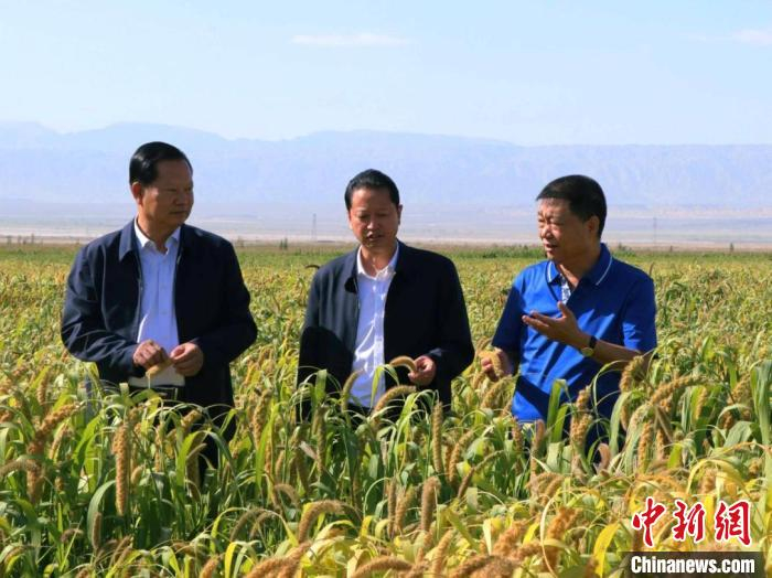 和静县委书记刘克文举着齐人高的谷子。 胡嘉琛 摄