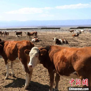 记者看到,“华凌牛业和静田园综合体”内已圈养着大批体格健硕、毛色纯正的肉牛。华凌牛业集团副总经理王玉江告诉记者,这些西门塔尔牛将用来改良当地土黄牛,改良后的牛犊一头多挣近4000元。