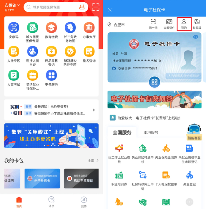 现在登录皖事通打开电子社保卡