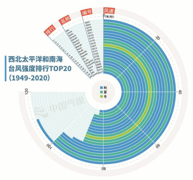 统计显示,在72年来台风强度排行前20名中,秋台风占11席,而且强度最强也是秋台风,排行榜前7中有5个属于秋台风。