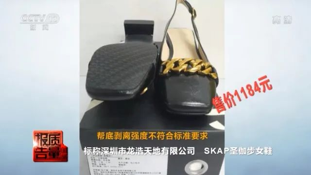这双标称深圳市龙浩天地有限公司的SKAP圣伽步女鞋,售价1184元,其帮底剥离强度被检出不符合标准要求。帮底剥离强度项目不过关,人在穿着过程中鞋子很容易出现开胶,甚至鞋底脱落,影响使用,并且可能造成一定人身伤害。
