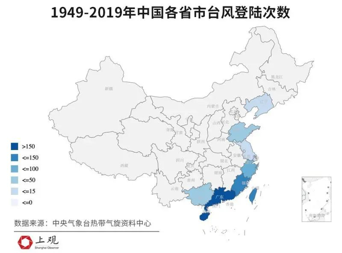 据中国气象局热带气旋资料中心及气象科普苑的数据,自1949年至2020年,中国一共有过860次台风登陆,但其中只有9次登陆地点在上海。